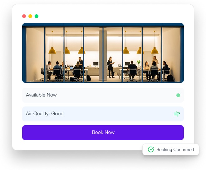 Turn your existing website into a live booking and lead-generation engine. With Desklinq's ready-to-use widgets and APIs, you can showcase real-time availability, pricing, and air-quality insights—and let users book instantly, without manual follow-ups.